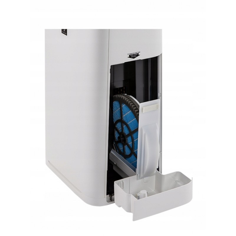 Звичайно, є і зволожуючий фільтр, який затримує осад та мікроорганізми, що містяться у воді. В останній серії він був покращений, має більшу механічну міцність і може промиватися під струменем води. Sharp KC-G50EUW зволожує повітря за допомогою технології випаровування. Завдяки функції зволоження пристрій постійно контролює температуру та відносну вологість повітря та виділяє достатню кількість водяної пари, щоб постійно підтримувати рівень вологості на оптимальному рівні, що становить від 40 до 60% та залежить від температури навколишнього середовища.