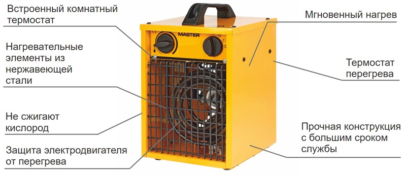Электрический нагреватель воздуха Master B 1.8 ECA является универсальным нагревателем, применяемым во многих сферах. Это оборудование идеально подходит в качестве временного источника обогрева благодаря своей мобильности и простоте обслуживания. Для производства электрических нагревателей Master используются комплектующие высокого качества, обеспечивающие надежность и эффективность этих приборов.